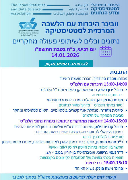 להלן חומרים מוובינר בשיתוף הלשכה המרכזית לסטטיסטיקה, שנערך ב-14.1.26.